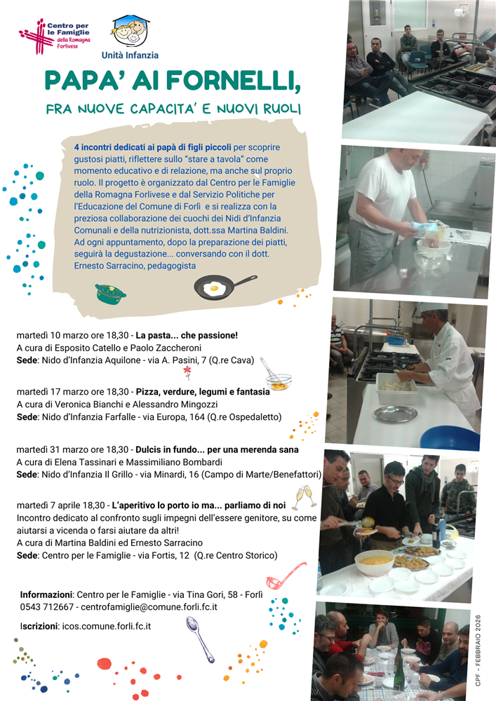 Informazioni: Centro per le Famiglie - V. Tina Gori 58 - Forlì - 0543 712667 - centrofamiglie@comune.forli.fc.it.